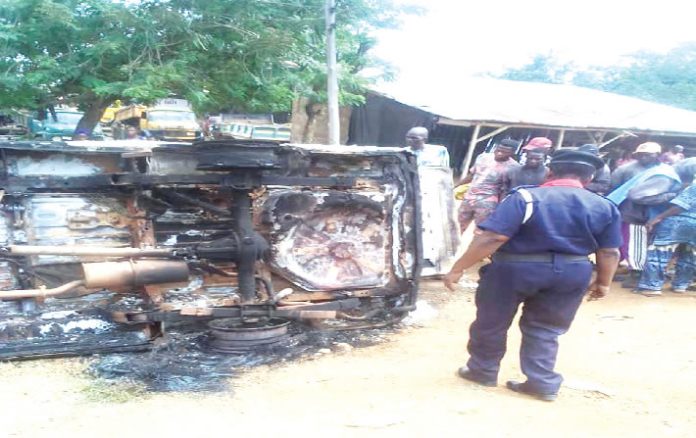 A resident of Okinni, identified as Adeyanju, on Thursday, said the driver of the bus conveying the victims had hit a commercial motorcyclist in the town, and was making attempt to escape the rage of some angry residents chasing after him.