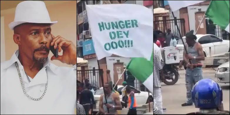 Nollywood actor, Hanks Anuku, staged a solo protest on Monday, drawing attention to the issue of hunger in the country.