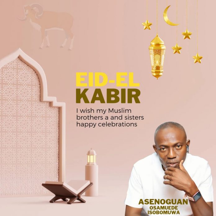 As the Muslim world celebrates Eid-el-Kabir, a feast that signifies total submission to the will of Allah and the willingness to make sacrifices in reverence of him, Mr Asenoguan has sent out a message to Muslim faithful wishing them happy celebrations. He equally enjoined them to pray for the country. Read his message below.