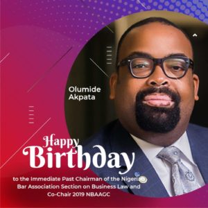 Olumide Akpata is the Immediate past chairman of the Nigerian Bar Association’s Section on Business Law, and was Co-Chairman of the Technical Committee on Conference planning for 2019 NBA-AGC that was held in August at the Eko Hotels & Suites, and the Harbour Point in Lagos.