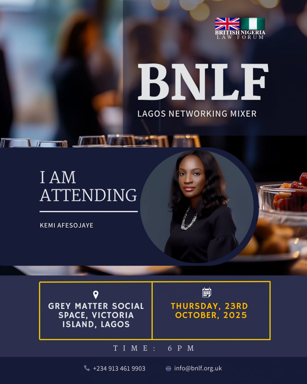 Join us on Thursday, 23rd October 2025, at Grey Matter Social Space, Victoria Island, Lagos, for an inspiring evening of connections, conversations, and community building with fellow legal professionals.