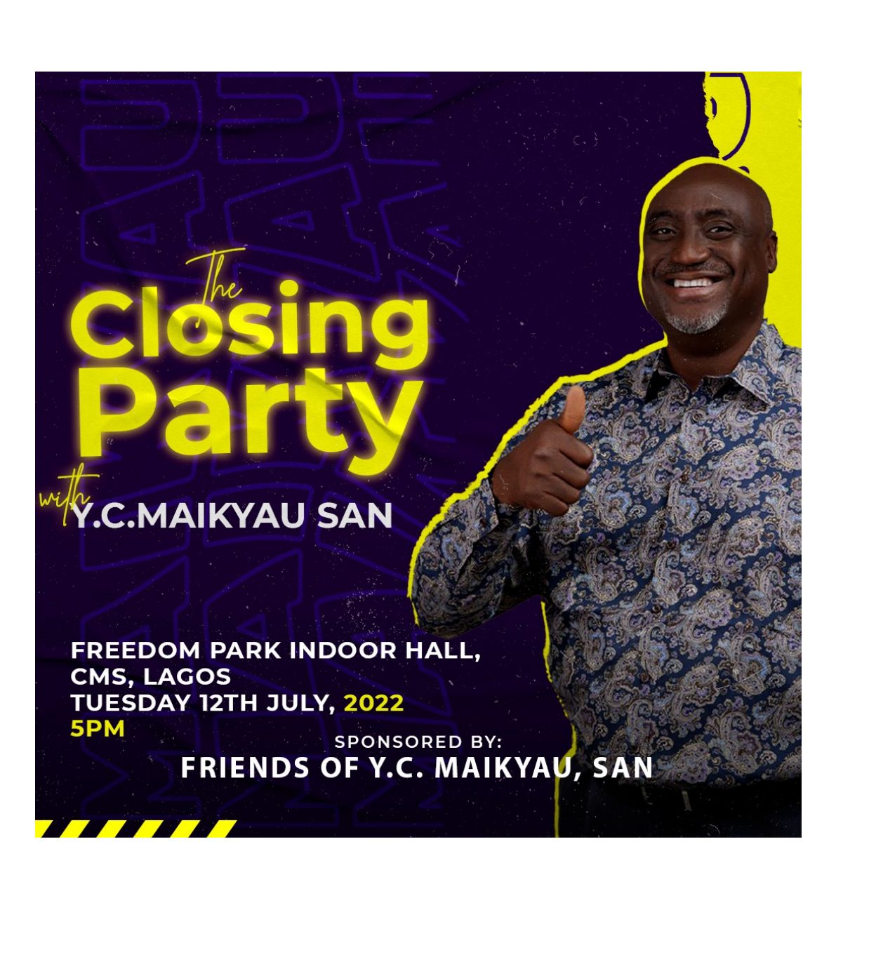 As the 2022 campaign season closes in the run-up to elections into various national offices in the Nigerian Bar Association (NBA), friends and well-wishers of Yakubu C. Maikyau, SAN, a frontrunner for the position of NBA President, will be hosting him and other invitees to a closing party on Tuesday, July 12, 2022 at the Indoor Hall of Freedom Park, CMS, Lagos.