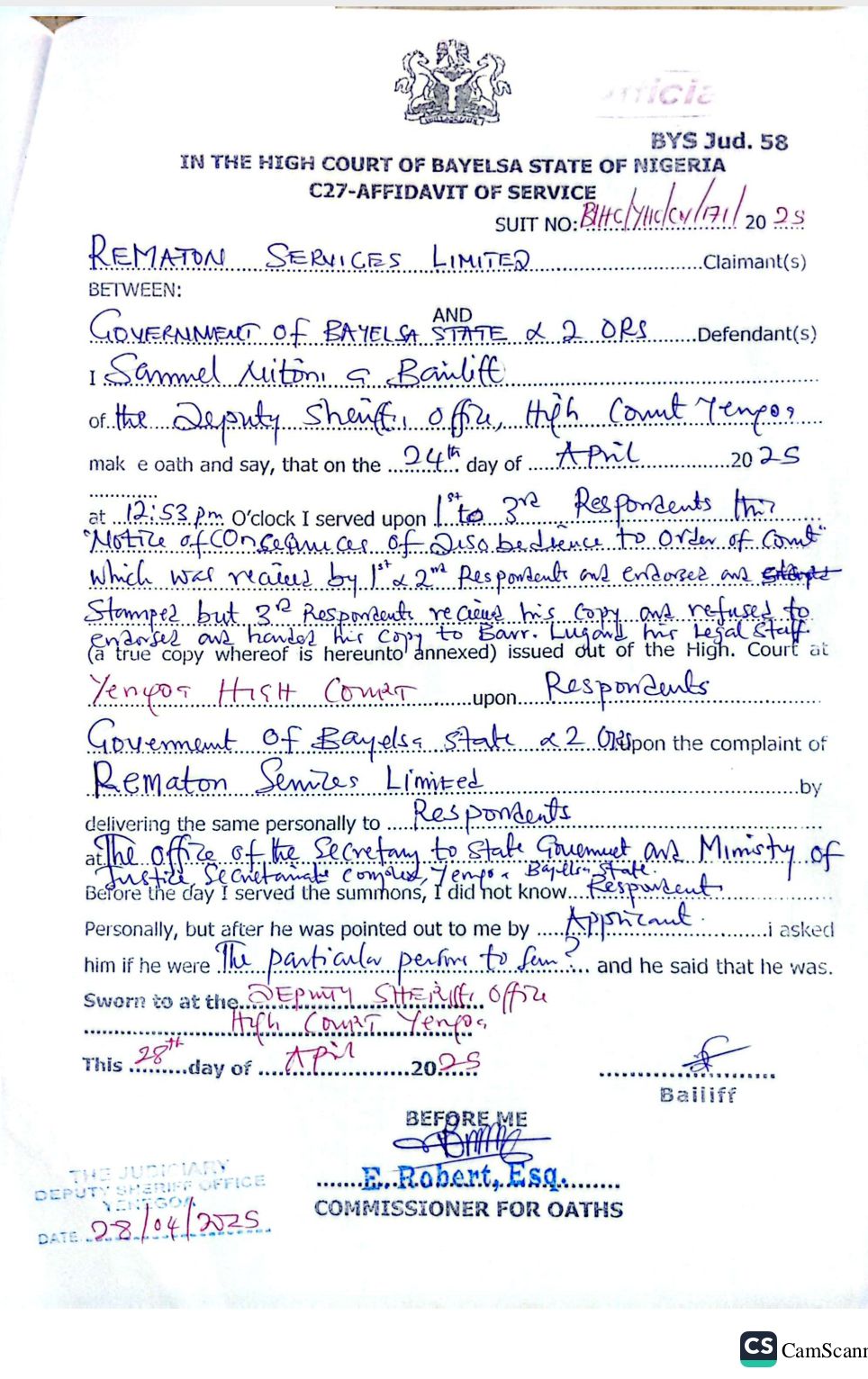 REMATON SERVICES LIMITED dutifully executed and completed the construction of the Bayelsa State Judiciary Complex in 2010. Yet, fifteen years later, the company—now represented by its widowed alter ego, Architect (Pastor) Boma Ojokojo—is still being systematically denied payment for work fully delivered, certified, occupied, and enjoyed by the State.