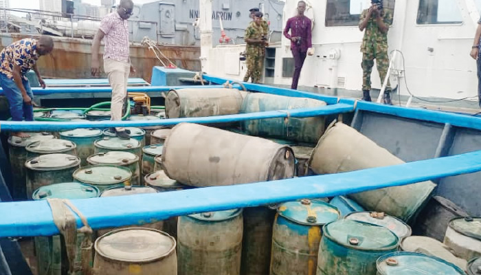 The statement added that the Nigerian Navy ship Beecroft patrol boat contained 205 drums of a substance alleged to be Premium Motor Spirit and other products.