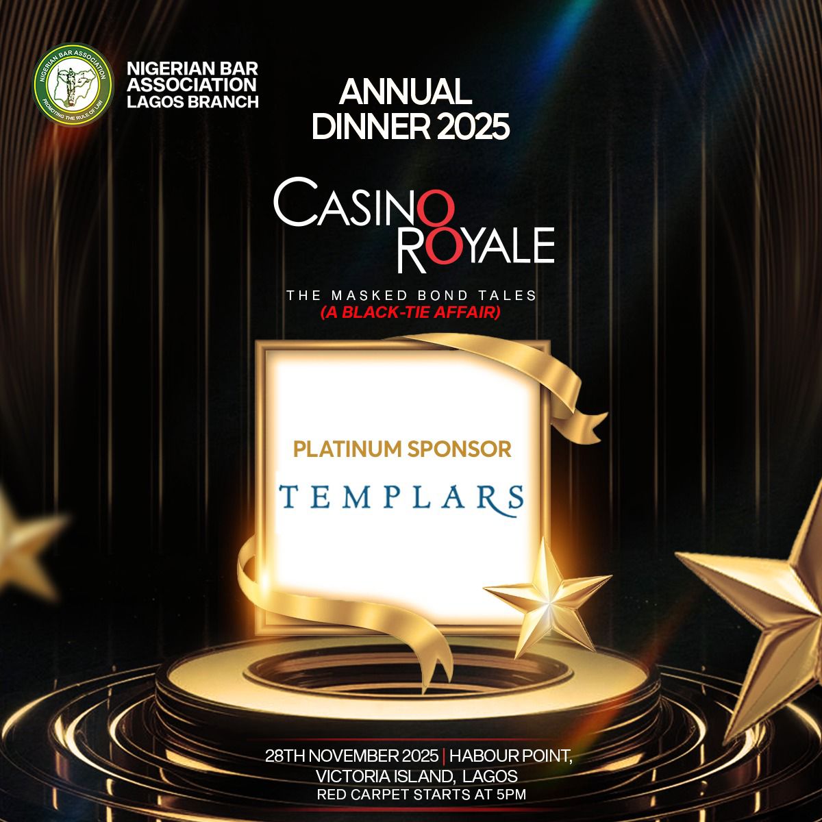The Nigerian Bar Association, Lagos Branch, is proud to announce Templars as a Platinum Sponsor for Our Annual Dinner 2025 themed: CASINO ROYALE: The Masked Bond Tales (A Black-Tie Affair).