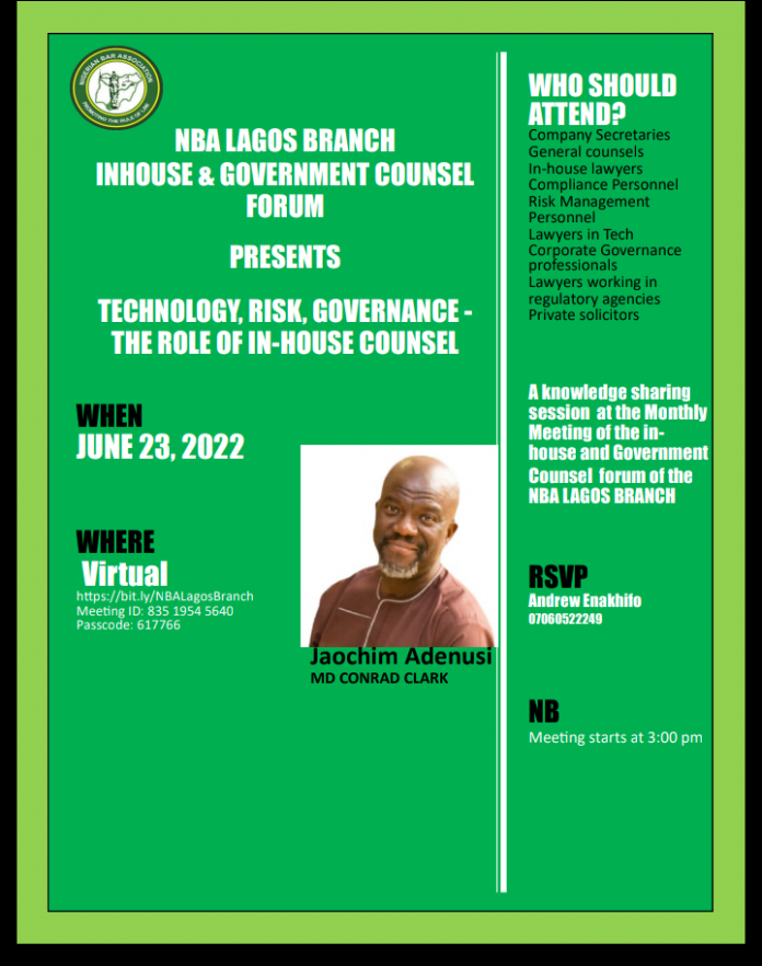 The Nigerian Bar Association (NBA) Lagos Branch In-house & Government Counsel Forum invites you to a Webinar titled: