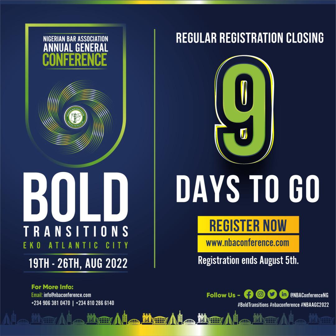 It is exactly 9 Days to the end of “Regular Registration” for the 2022 Annual General Conference.