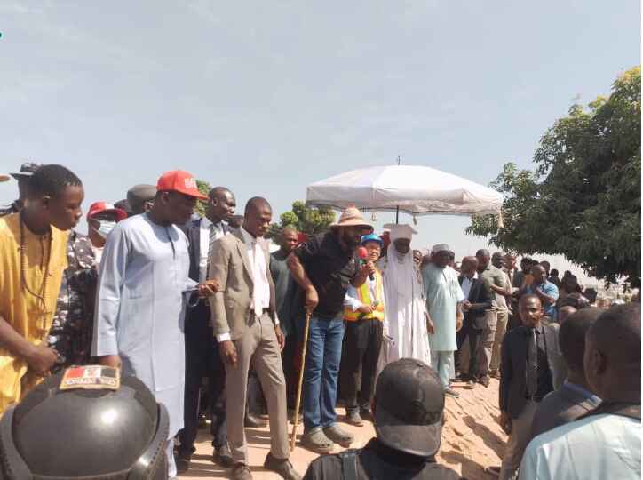 There was also a large presence of security operatives including mobile policemen, officials of the Department of State Services DSS as well as vigilante personnel, all of whom ensured the momoth crowd which greeted the governor’s visit did not get any close.