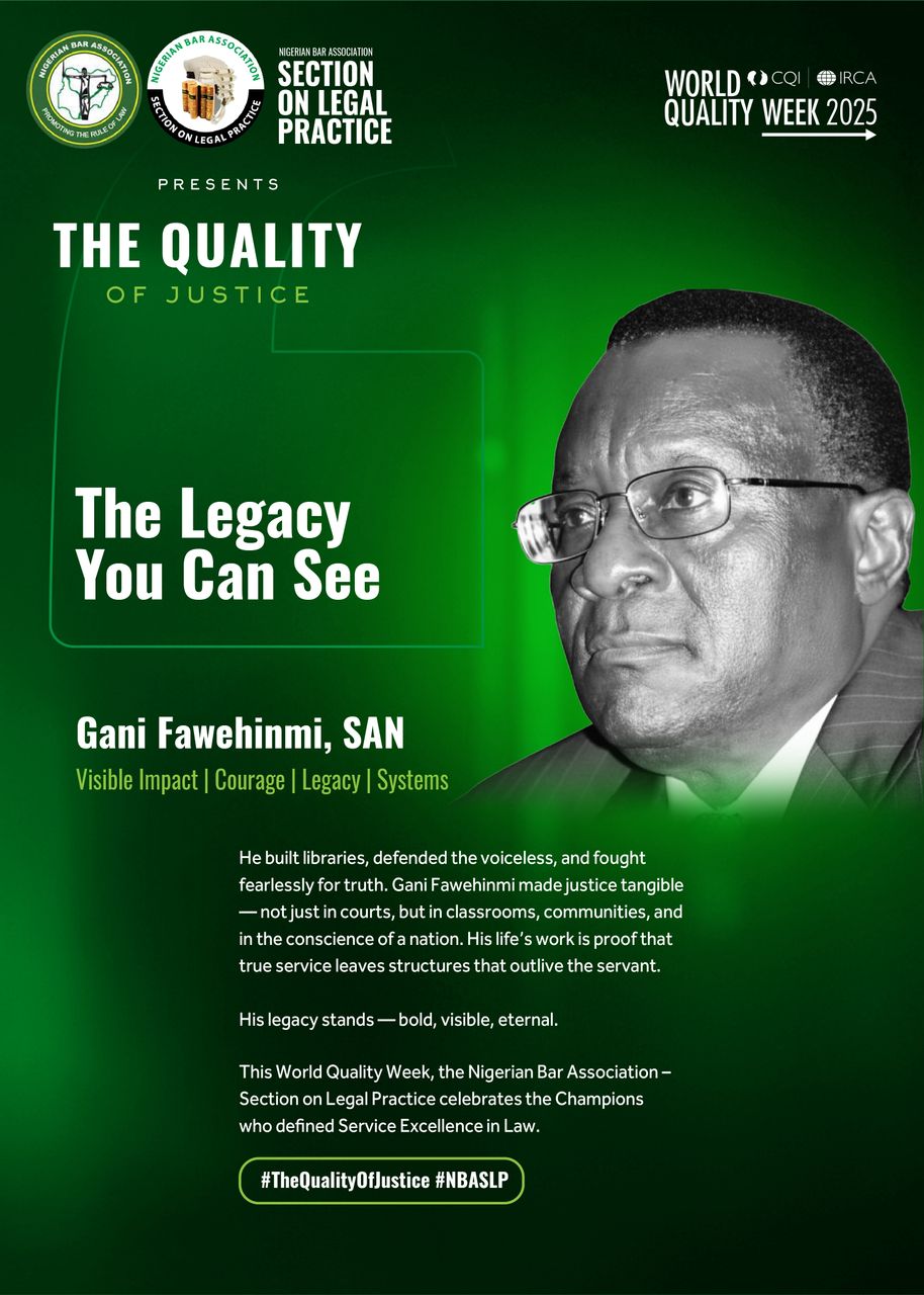 #QualityServiceWeek #NBASLP #QualityOfJustice #RuleOfLaw #IntegrityInPractice #JusticeForAll #LegalExcellence #GaniFawehinmi #QualityJustice