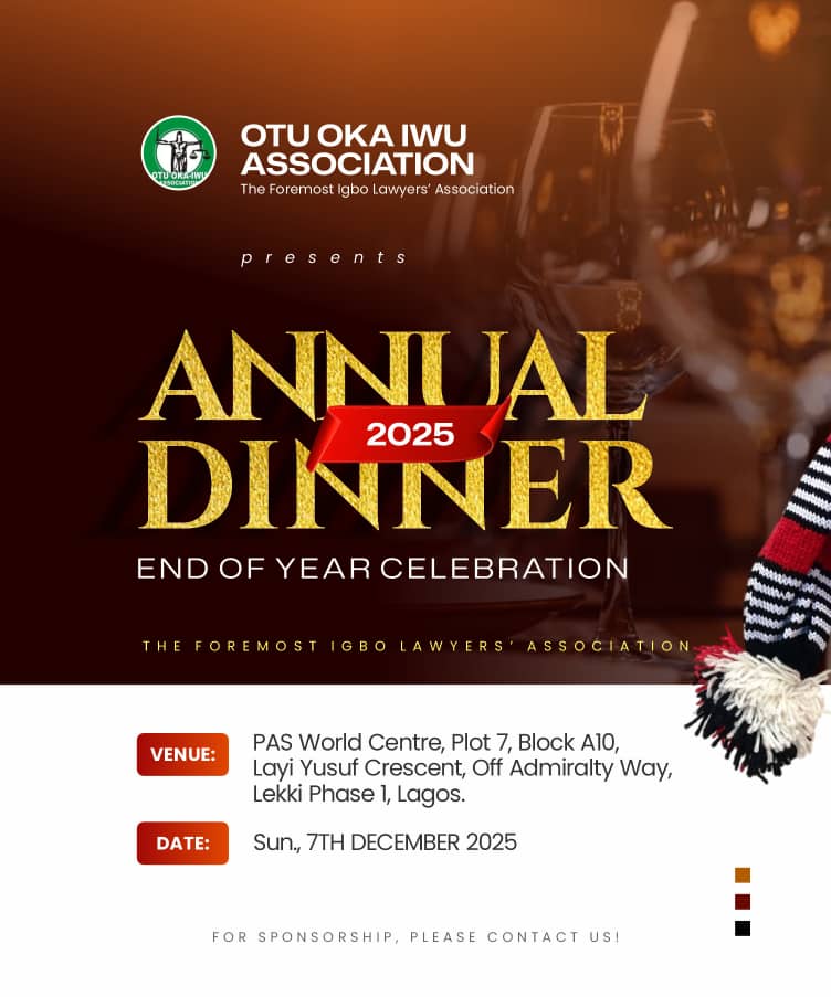 Otu Oka Iwu — The Foremost Igbo Lawyers’ Association cordially invites you to its Annual Dinner & End-of-Year Celebration 2025