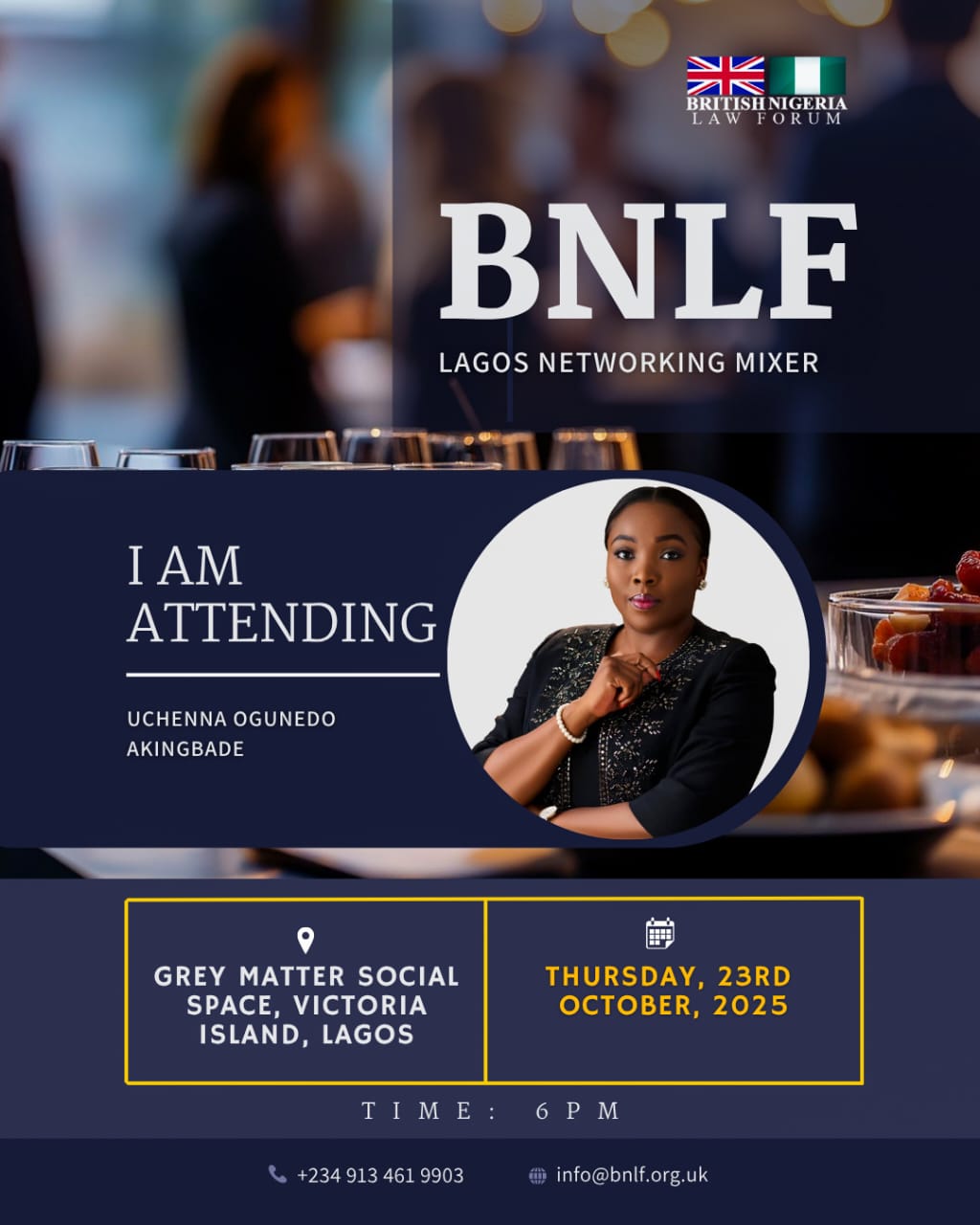 This Thursday, 23rd October 2025, the BNLF Lagos Networking Mixer takes over Grey Matter Social Space, Victoria Island, for an evening of connection, insight, and celebration. Whether you’re a young lawyer, seasoned practitioner, or simply passionate about the future of law in Nigeria, this event is designed for you.