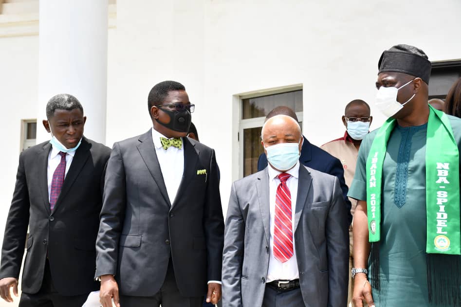 The NBA-SPIDEL delegation included former NBA General Secretary and Chairman of Oyo State Independent Electoral Commission (OSIEC), Mr. Abiola Olagunju (SAN); human rights activist and Chairman of the Conference Planning Committee (CPC), Mr. Monday Ubani, and NBA Ibadan Branch Chairman, Mr. Olayinka Esan. The delegation was received by Governor Makinde alongside the Secretary to the State Government, Mrs. Olubanwo Adeosun; Chief of Staff, Chief Oyebisi Ilaka and five commissioners including Prof. Oyewo; Mr. Olasunkanmi Olaleye (Education, Science & Technology); Mr. Adeniyi Farinto (Budget & Planning); Mr. Seun Ashamu (Energy) and Mr. Rahman AbdulRaheem (Lands) as well as the Director General of Due Process, Tara Adefowopo.