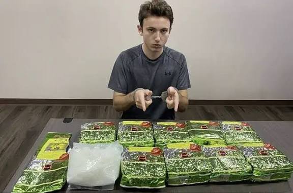 Photos accompanying the statement showed a suitcase on a bed with foil bags labelled as tea, which police say after testing contained crystal meth.